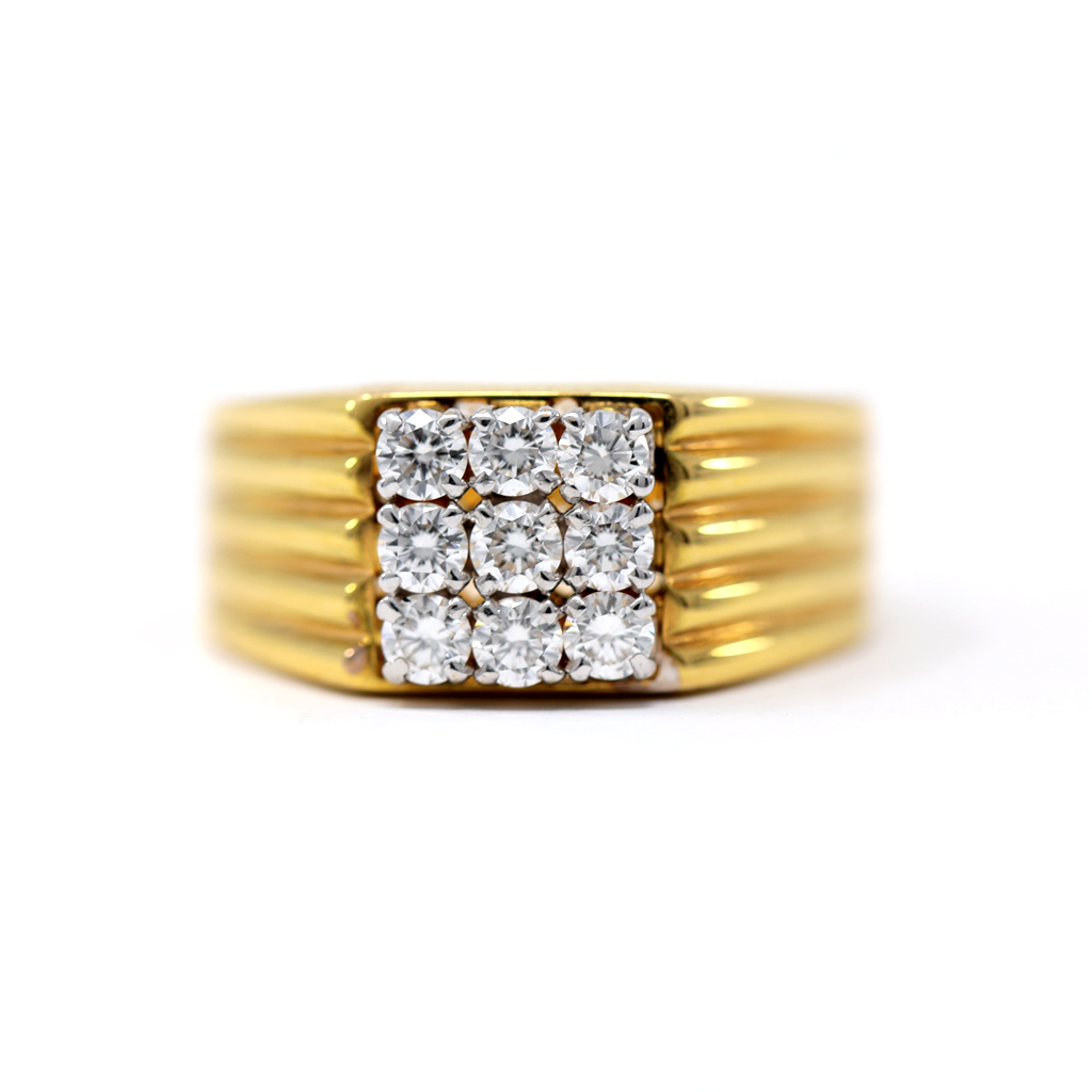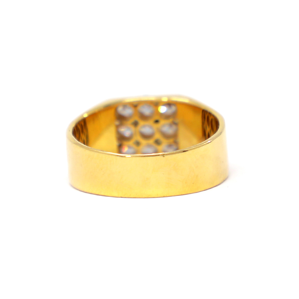 This grandeur ring with sparkling diamonds multi sequence on the square shaped platter shows the skillfulness of the craftsmanship with its delicate pattern, held together with a gold band. Treat yourself with your everyday look to create a sparkle.